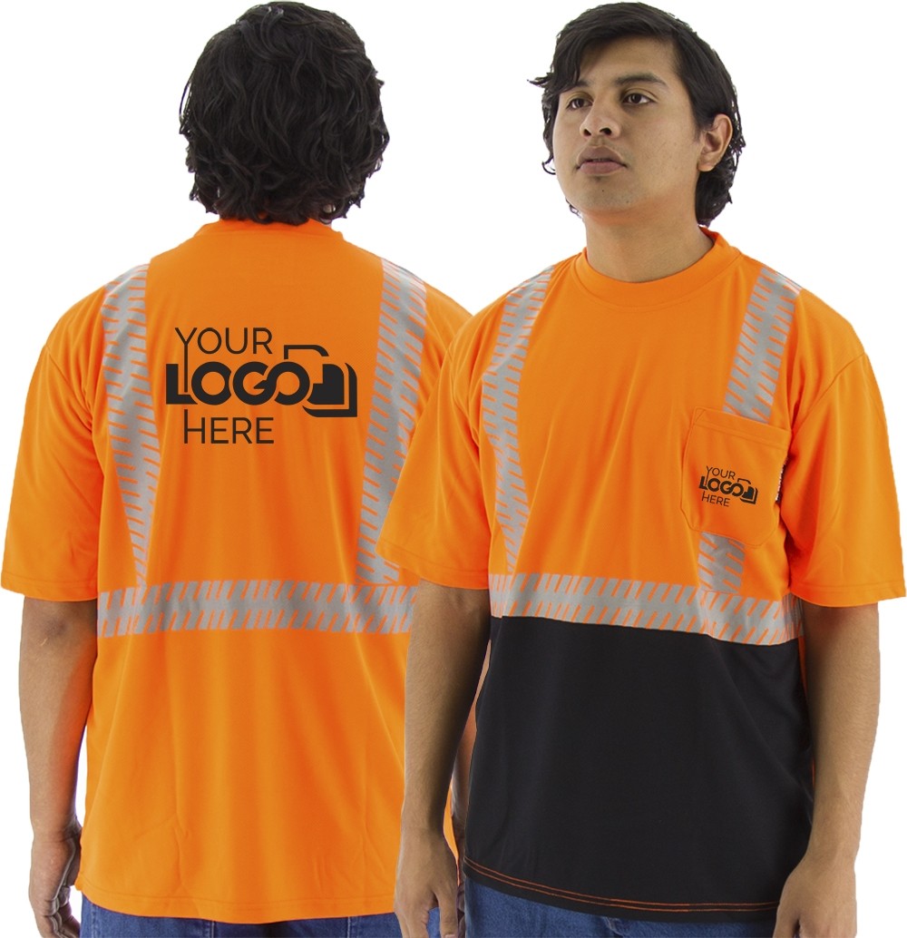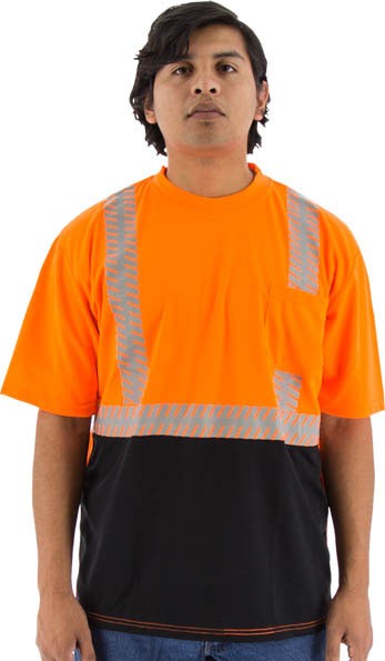 Majestic® 75-5216 Class 2 High Visibility Orange/Black Short Sleeve T-Shirt with Reflective Chainsaw Striping