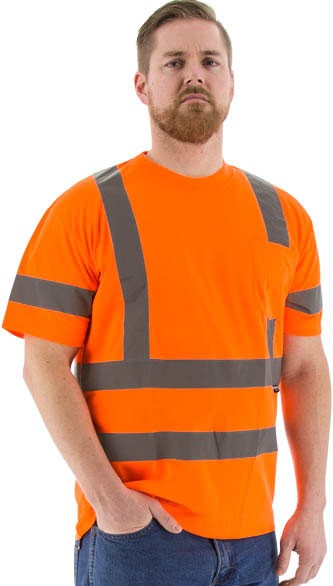 Majestic® 75-5306 ANSI Class 3 High Visibility Orange Short Sleeve T-Shirt with Chest Pocket