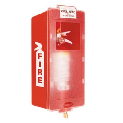 These Mark Series Fire Extinguisher Cabinets are great in storing fire extinguishers safely and handily. These are made from injection-molded high impact ABS plastic that won't dent, rust or corrode. Plus, their unique design eliminates a breaker bar and broken glass! Comes with brass lock, cover and safety labels. The cabinets nest together reducing shipping costs and storage space! Recommended for outdoor use. The Mark II Jr. Measure 21 3/4"H x 9 5/8"W x 6 3/8"D