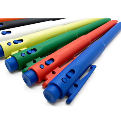 Our Metal Detectable Gel Pens are made from a thermoplastic co-polymer compound based on polypropylene that is suitable for injection molding. This compound has electromagnetic detectability, visibility under x-ray, and the ability to incorporate silver ion antimicrobial technology for specific applications. The inherent properties of polypropylene provide strength and resistance against various chemical solvents, acids, and bases.