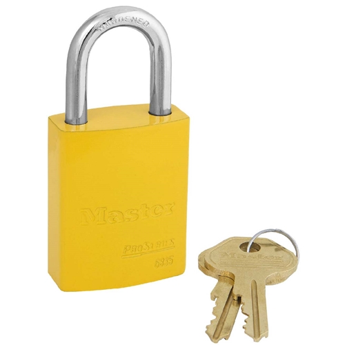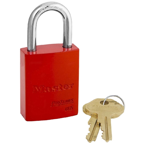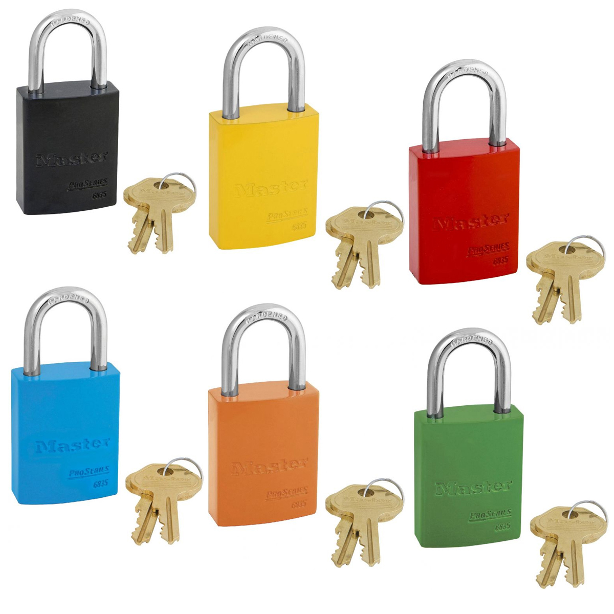 These Aluminum Padlocks have an anodized finish ideal for food service facilities. They are made of a corrosion resistant solid aluminum. They are lightweight and spark resistant. The locks are keyed differently and come in 6 colors.