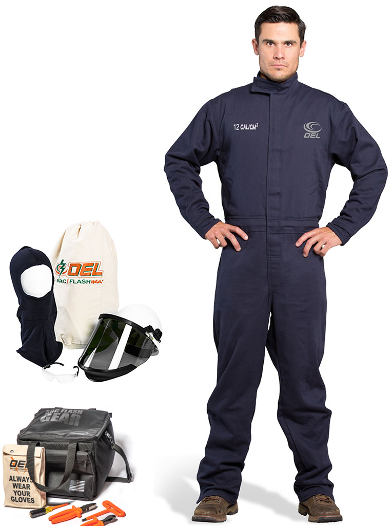 OELŪ 12 Cal/cm2 CAT 2 Coverall Arc Flash Protection Kit with Headgear, NFPA 70E, Navy