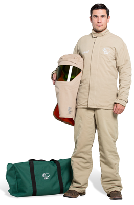 OELŪ 40 Cal/cm2 CAT 4 Jacket and Bib Overalls Arc Flash Protection Kit with Switchgear Hood, NFPA 70E, Khaki