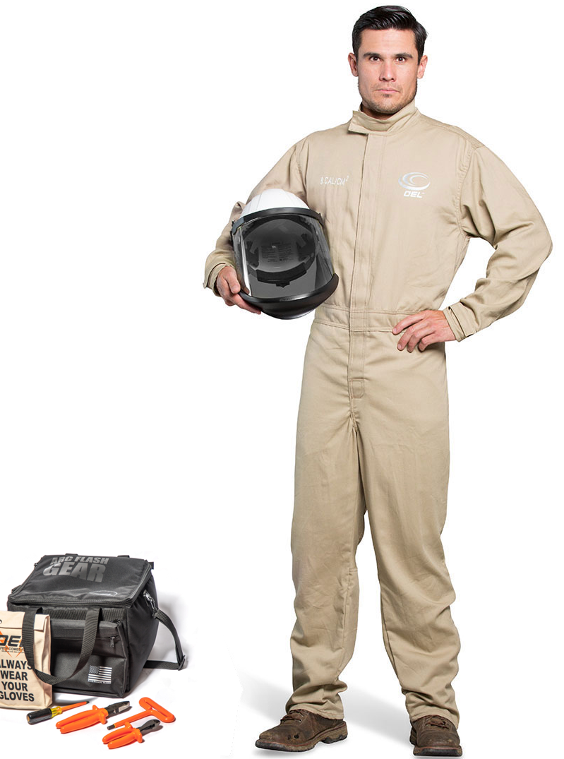 OELŪ 8 Cal/cm2 CAT 2 Coverall NFPA 70E Arc Flash Protection Kit with Headgear, Khaki