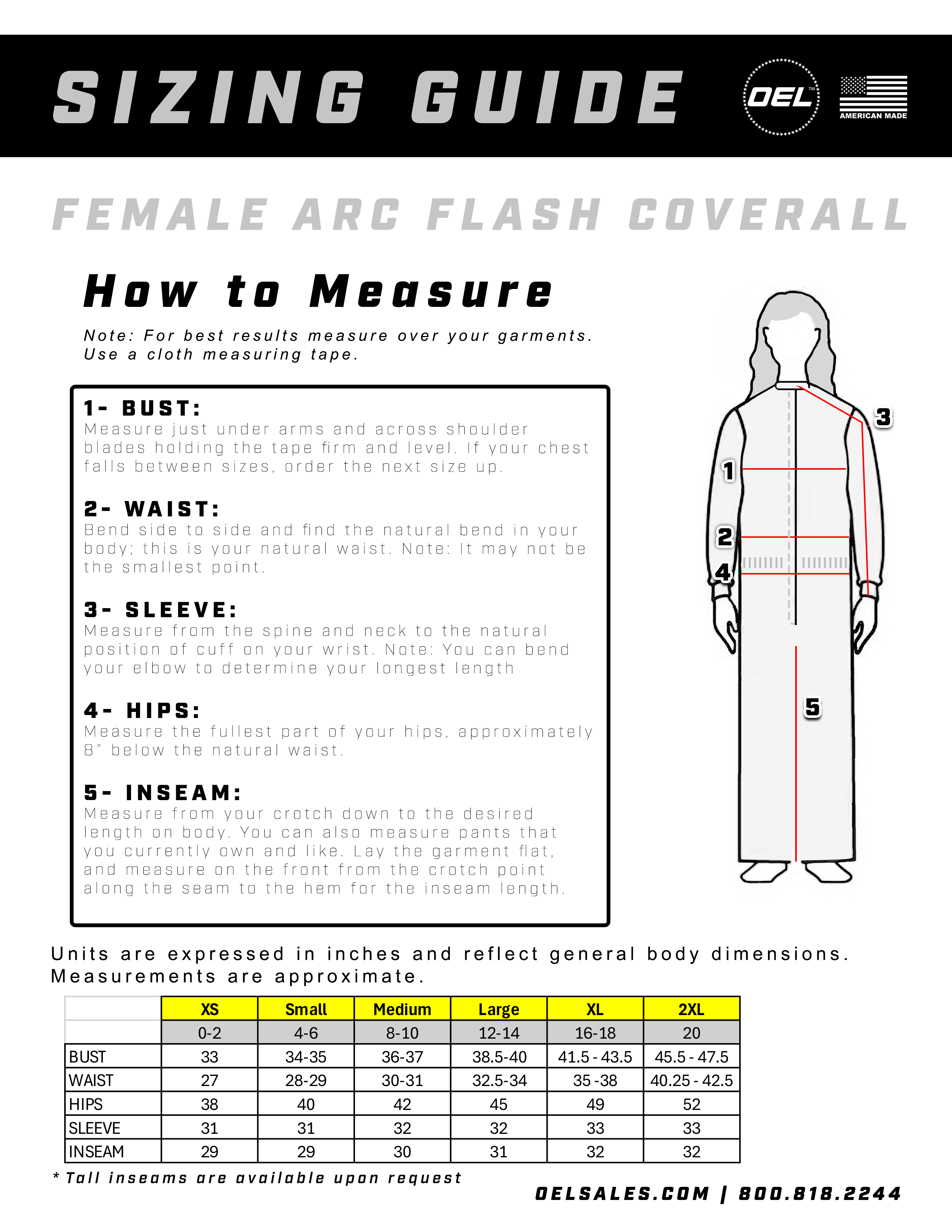 OEL Women’s 12 Cal Arc Flash Coveralls Kit with Headgear, CAT 2, NFPA 70E