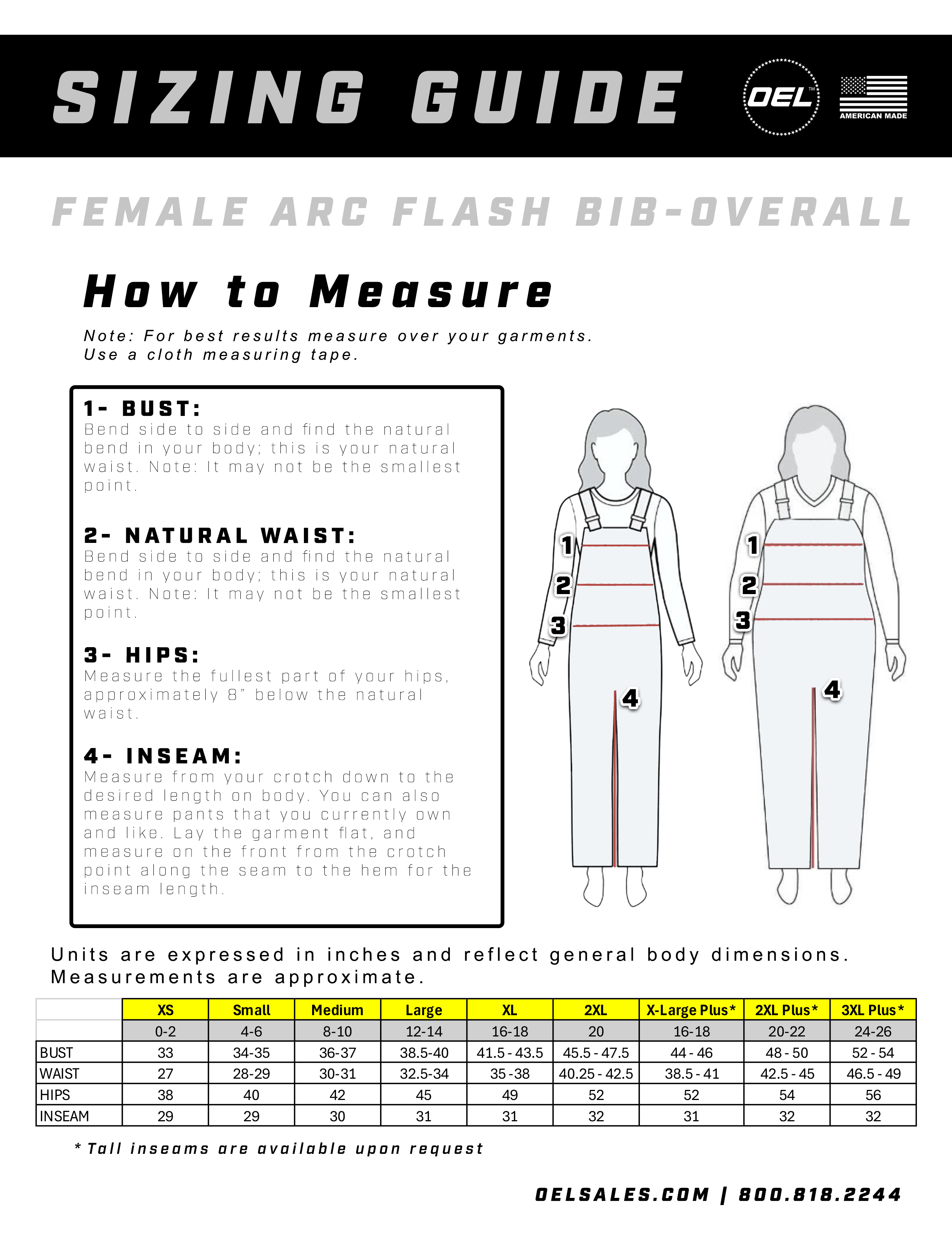 OEL Women’s 40 Cal Black Series GTX Arc Flash Bib Overalls, CAT 4, NFPA 70E