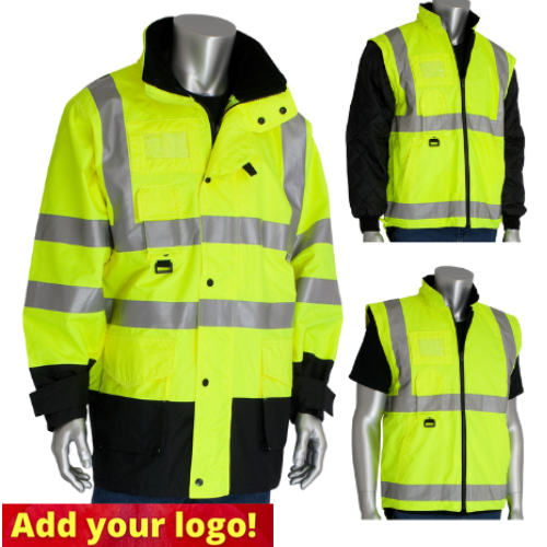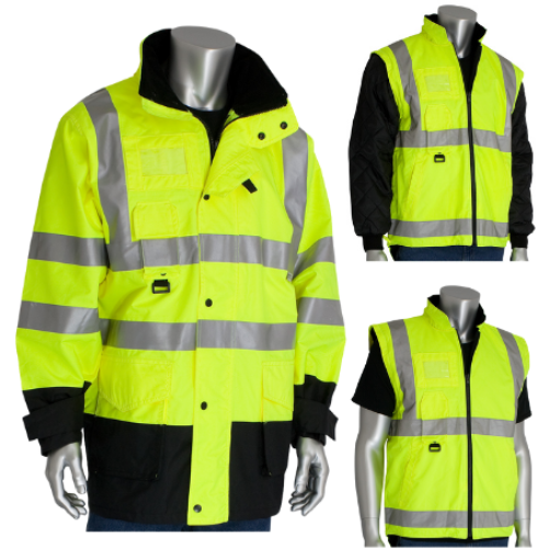 PIP® 343-1756 ANSI Class 3 Hi-Visibility Yellow 7-in-1 All Conditions Coat with Inner Jacket and Vest Combination