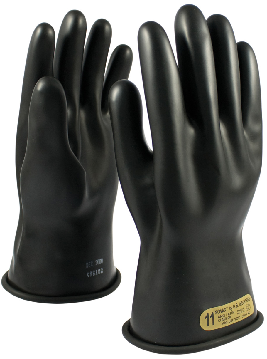 PIP® Novax® 150-00-11 Class 00 Rubber Insulated Electrical Gloves with Straight Cuff, 11", Black