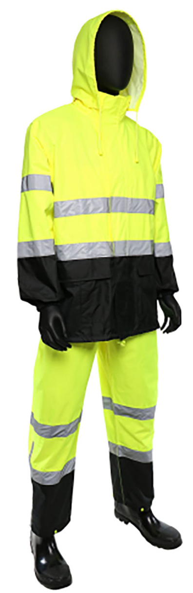 PIP® West Chester® 4530SE ANSI Type R Class 3 High Visibility Lime FR Treated Two-Piece Rainsuit with Black Bottom