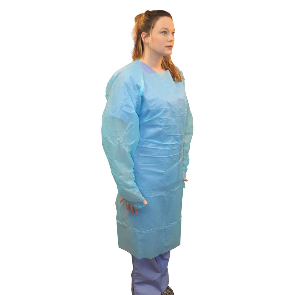 American Health & Safety Polyethylene Isolation Gowns with Thumb Loops, Universal Size - 100/Case
