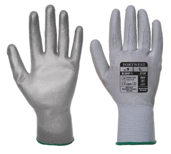 Portwest® A120 Gray Polyurethane Palm Dipped Gloves – Dozen