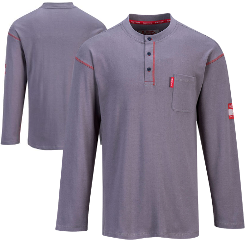 Portwest® FR02GRR Bizflame FR Henley Shirt, Gray, 12 Cal/cm2