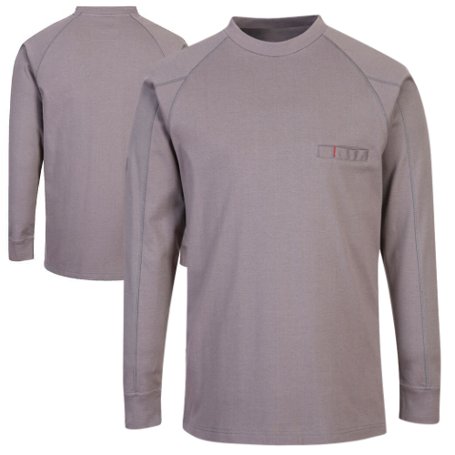 Portwest® FR33GRR Bizflame Gray Antistatic FR Crew Neck Shirt, Long Sleeves, 10 cal/cm2