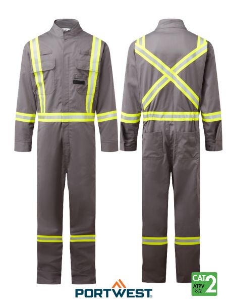 Flame-Resistant Coveralls That Work as Hard as You Do. Make a bold move in Gray with the Portwest FR511 Bizflame X-Back FR Iona Xtra Work Coveralls—crafted for those who put safety first but refuse to compromise on comfort. These coveralls are built to take on high-risk environments while keeping you cool, visible, and ready for anything.
