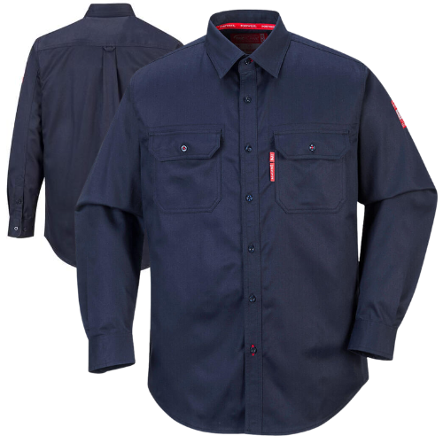 Portwest® FR89NAR Bizflame 88/12 FR Button Down FR Work Shirt, Navy Blue, 8.2 cal/cm2 Protection