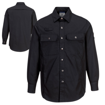 Portwest® Polycotton KX3 Ripstop Black Work Shirt, Button Down, Long Sleeve