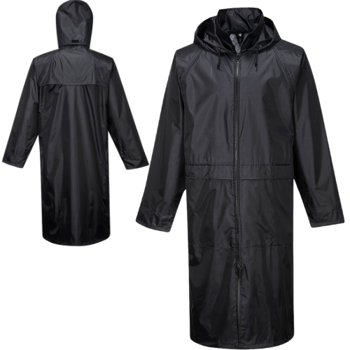 Portwest® S438BKR Black Classic Waterproof Rain Coat, Pack-Away Hood, Vented Back