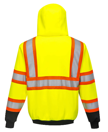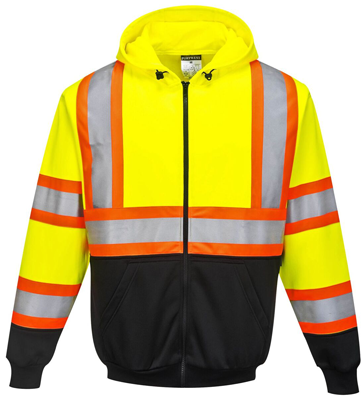 Portwest Hi-Vis Yellow/Black Kansas Zipped Hoodie Sweatshirt, Class 2/3