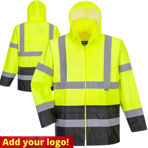 Portwest® UH443 Class 3 Hi-Vis Yellow/Black Classic Contrast Rain Jacket