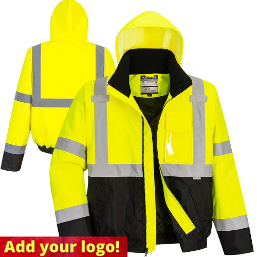 Portwest Hi-Vis Yellow/Black Waterproof Bomber Jacket, Class 3