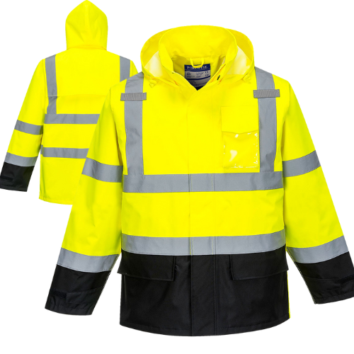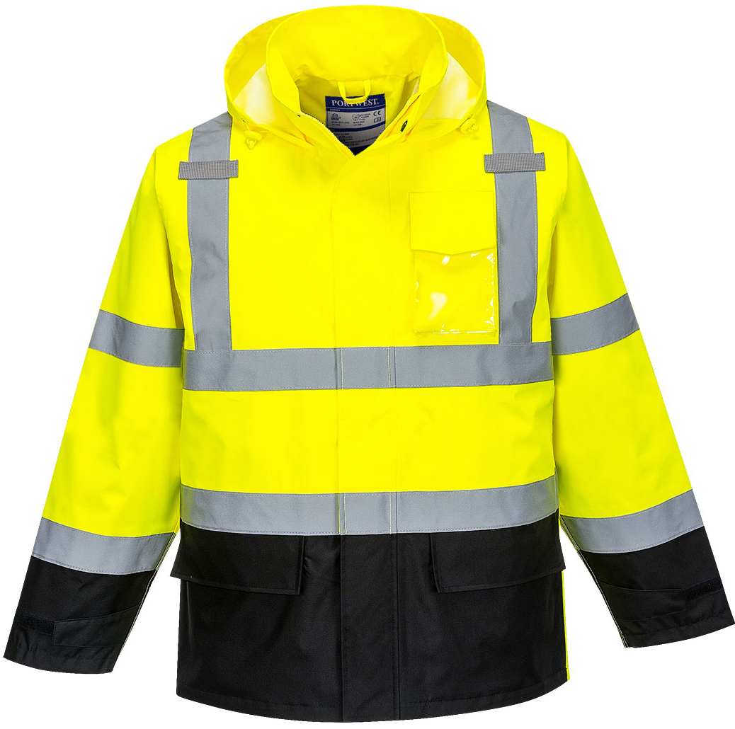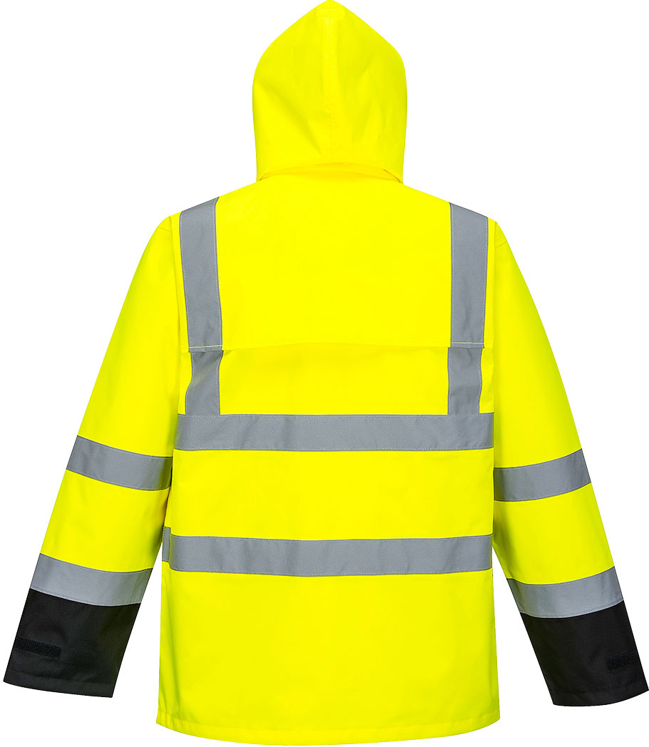 Portwest® US366YBR Class 3 Hi-Vis Lime Contrast Waterproof Rain Jacket with D-Ring Slot and Pack-Away Hood