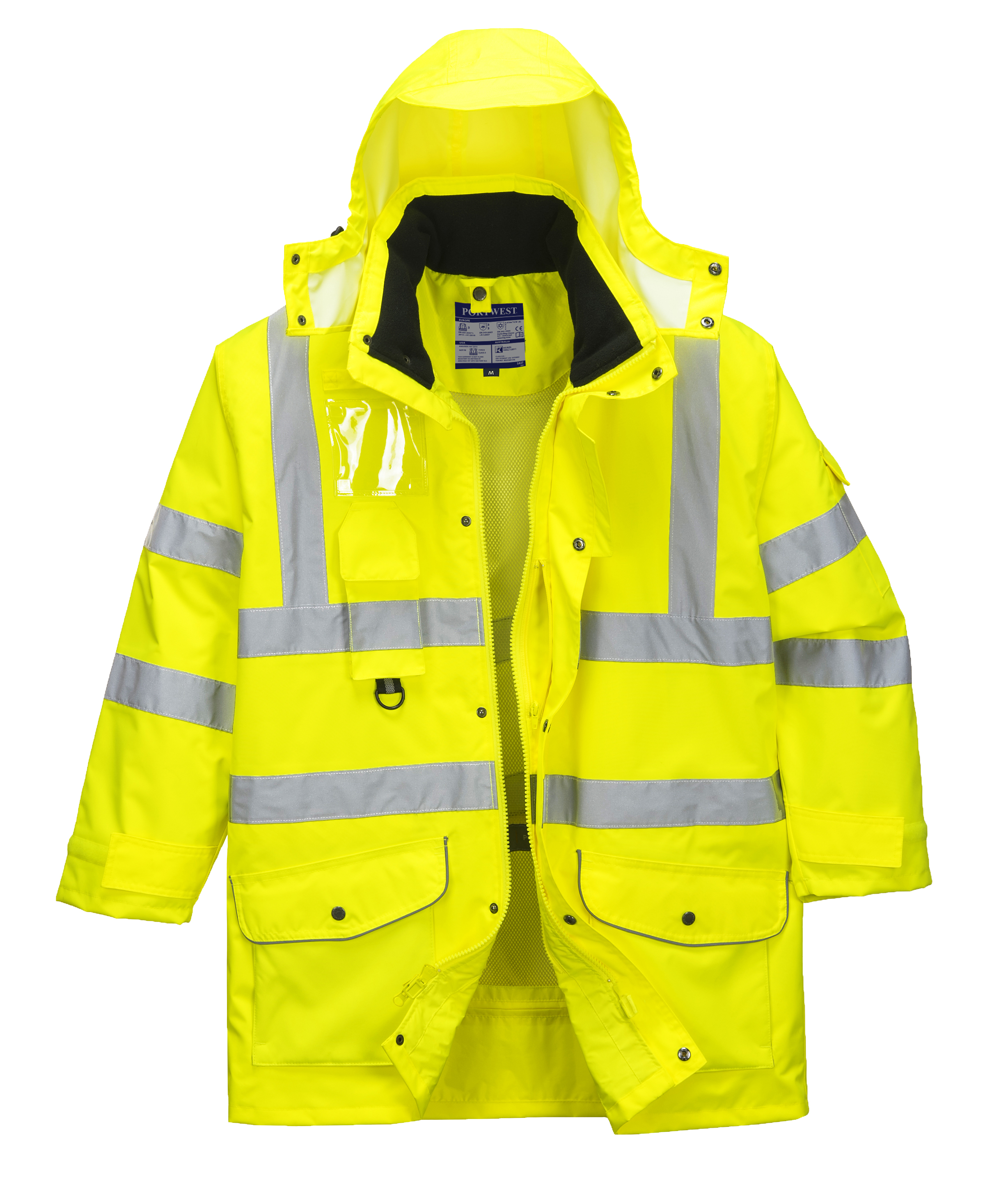 Portwest® US427 Waterproof Class 3 Hi-Vis Yellow 7-IN-1 Traffic Jacket
