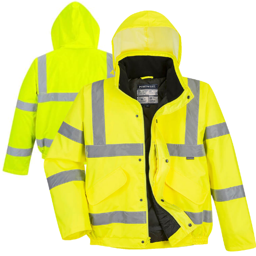 Portwest Padded Hi-Vis Yellow Bomber Jacket, Class 3