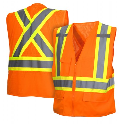 • Color – Orange with 2" Silver Reflective Striping and 4” Lime Contrasting Striping that Forms an X on the Back