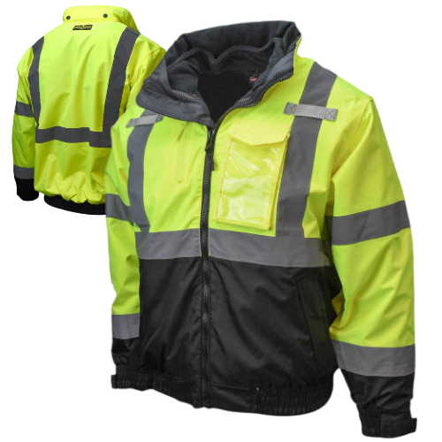 Radians® SJ210B Waterproof Hi-Vis Green 3-in-1 Bomber Jacket with Zip-Out Jacket, ANSI Class 3