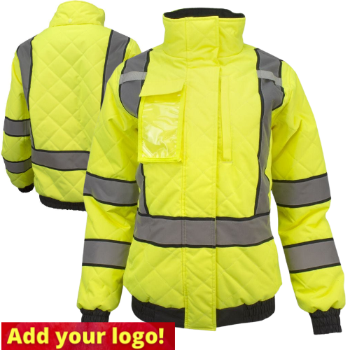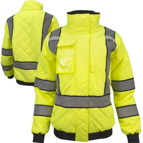 Radians® SJ930-3 Class 3 High Visibility Lime Women's Bomber Jacket with Removable Hood
