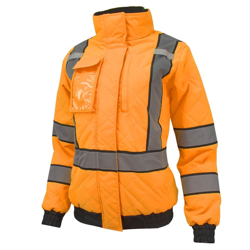Radians® SJ930-3 Class 3 High Visibility Orange Women's Bomber Jacket with Removable Hood