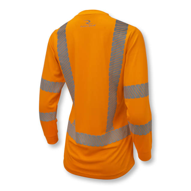 Made for Women by Women. Radians ST11W Class 3 Hi-Vis T-Shirt with Max-Dri™ Moisture Wicking Mesh is made with an arid Birdseye Mesh allowing for maximum breathability, without compromising durability. Tailored to fit a woman's shape and provide maximum visibility. The segmented stripes are adhered by heat transfer rather than sewn on, making the safety T-shirt more breathable and flexible, much more like a regular T-shirt. The wicking properties improve hot weather comfort making it feel much cooler. Long Sleeve, ANSI 107 Type R Class 3.