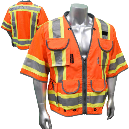 Radians SV55-3 Class 3 Heavy Woven Reflective Vest, Hi-Vis Orange, Two-Tone