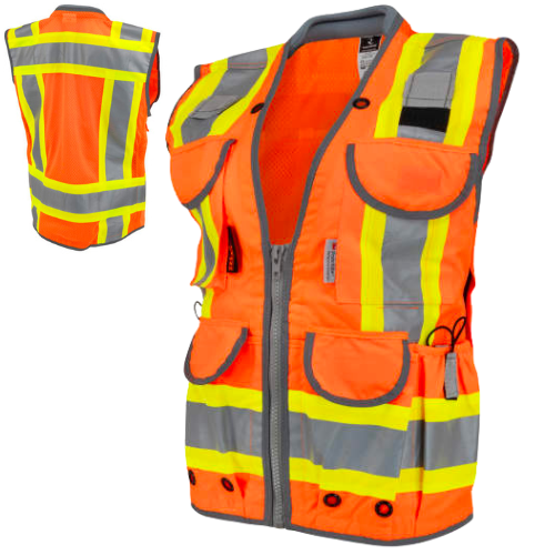 Radians SV55W Women's Class 2 Heavy-Duty Engineer Vest, Hi-Vis Orange, Two-Tone