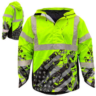 Introducing our latest addition to the lineup, we now offer the SafetyShirtz Class 3 American Grit Rain Jackets for all your rainy day needs! With our SS360° SafetyShirtz American Grit rain gear, you can make a statement on the job site while proudly displaying your patriotism and love for your country in high visibility. These jackets are Class 3 rated and designed to keep you warm, dry, and comfortable even in the most challenging weather conditions. The SS360 rain jacket features a spacious drawstring hood that can be adjusted to fit perfectly, along with a cozy inner polyester mesh liner to shield you from the elements and retain warmth. Elevate your workwear with our top-notch rain gear!