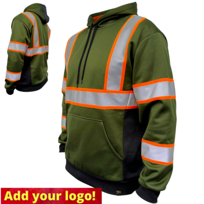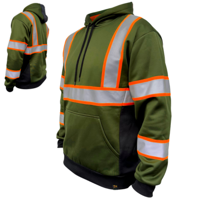 No matter what task you're undertaking, the SafetyShirts SS360 safety gear has got you covered. Stay safe on the worksite and showcase your style with this Enhanced Visibility hooded sweatshirts. These durable hoodies are designed to withstand the cold weather and stand the test of time. Featuring a distinctive Military Green color with neon orange stripe backing and accents, they offer a unique look that is both fashionable and safety-conscious.