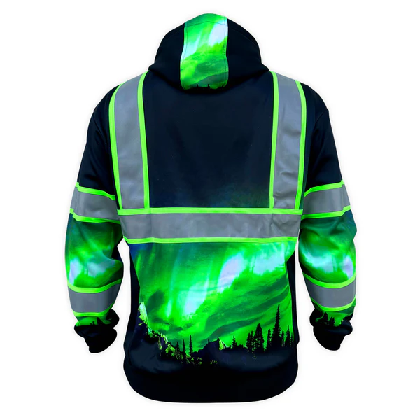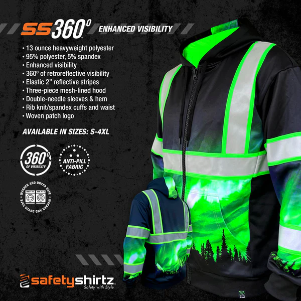 SafetyShirtz SS360 Northern Lights Zip-Up Safety Hoodie - Black & Florescent Green, Type O