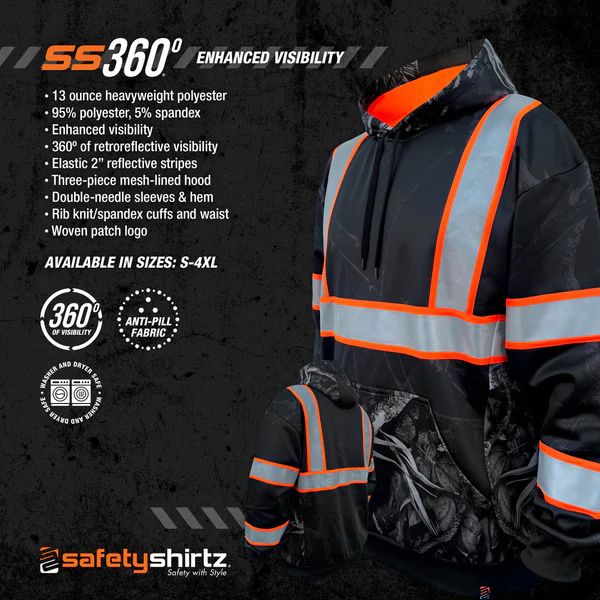 SafetyShirtz SS360 Stealth Nightfall Camo Black Enhanced Visibility Reflective Safety Hoodie