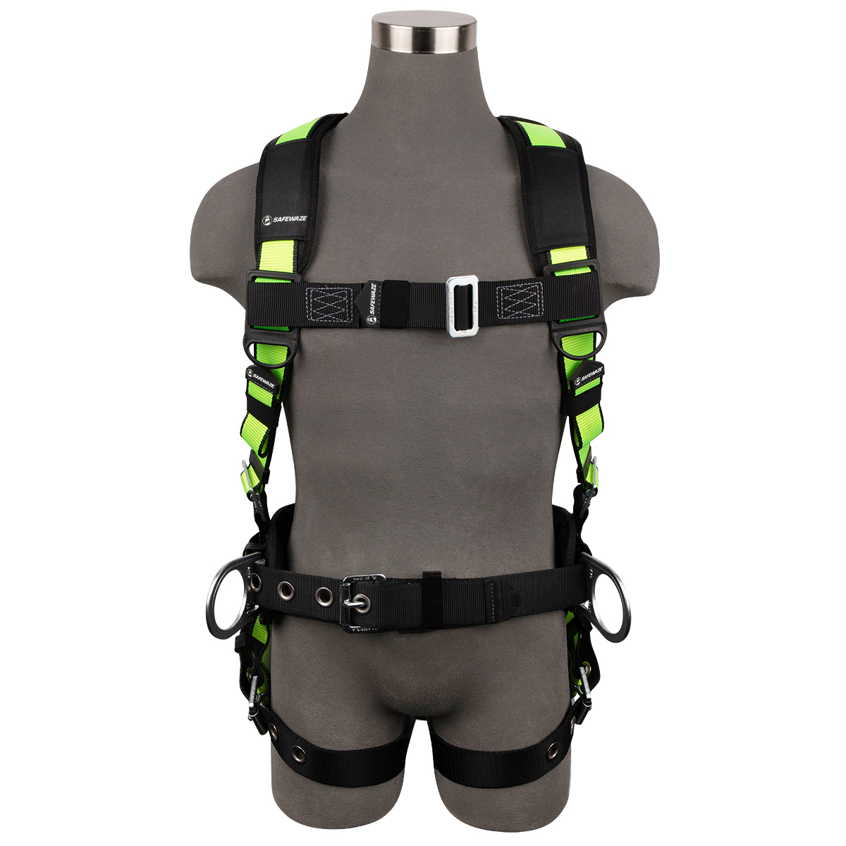 The Safewaze PRO Harness is a dependable workhorse, incorporating premium features for outstanding performance. Built with ergonomically designed padding and high-vis abrasian-resistant green webbing. Models equipped with corrosive resistant steel-plated D-rings, buckles and quick-connects. Offered in a variety of configurations.