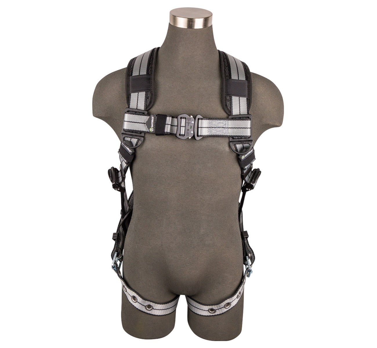 The PRO+ Slate Harness is the embodiment of dependable performance and superior comfort. High strength abrasion resistant webbing and advanced technical padding, composed of moisture wicking linings and closed cell foam, provide all-day ease of use and extended product life. Models equipped with a dorsal SRL link, lightweight aluminum D-rings, quick-connect buckles and torso adjusters.