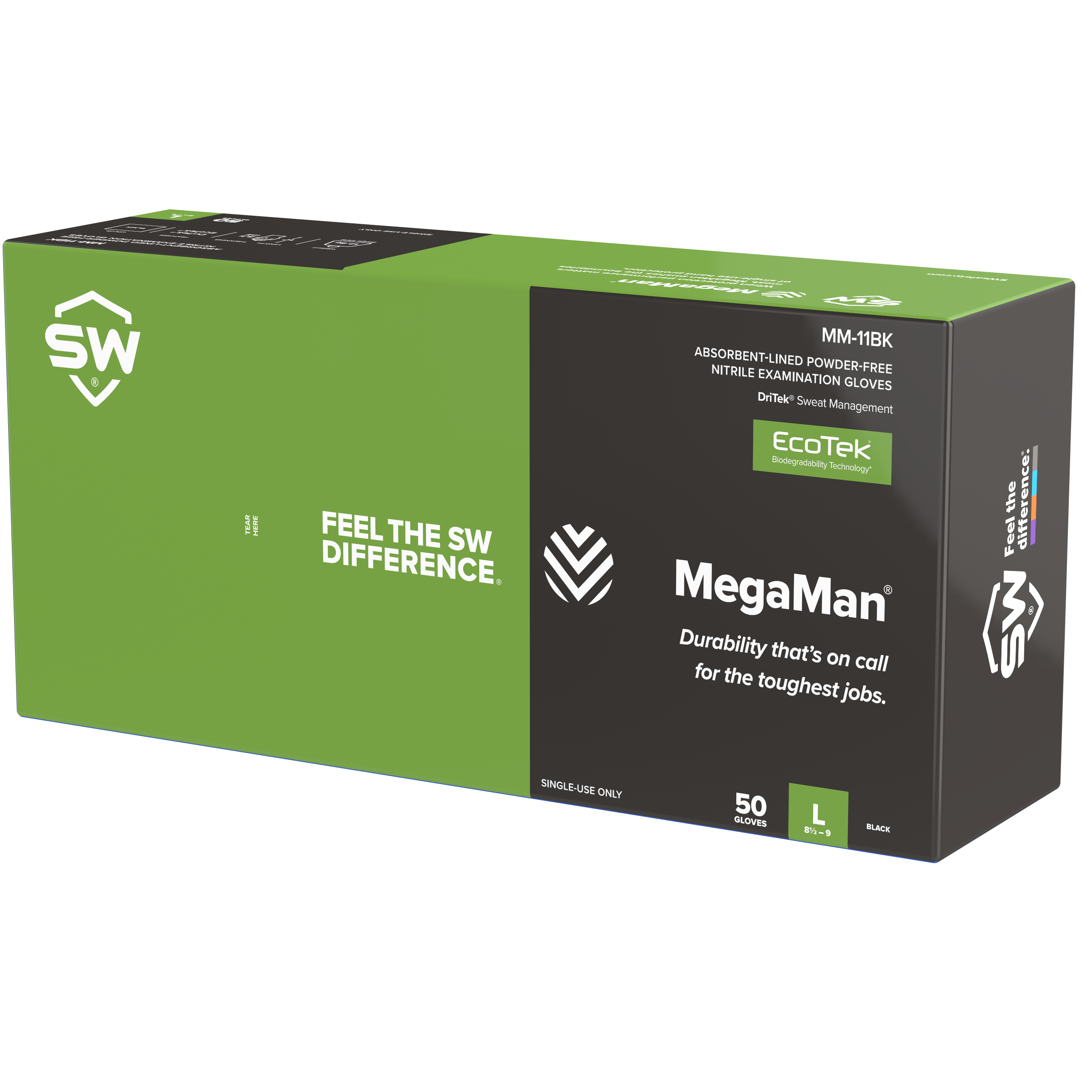 SW Sustainability Solutions Inc® MegaMan® Biodegradable Nitrile Exam Gloves, Black with DriTek® and EcoTek® - 500/Case