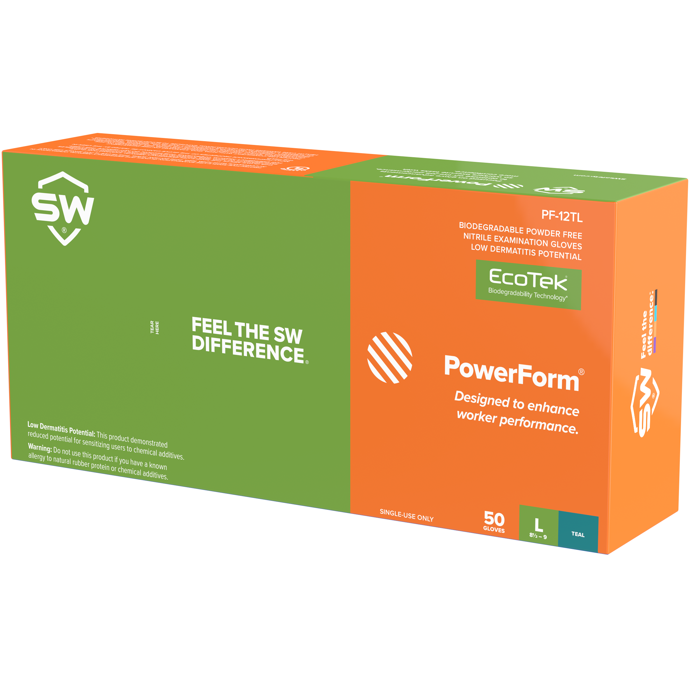 SW Sustainability Solutions Inc® PowerForm® Heavy Duty Teal Biodegradable Nitrile Exam Gloves, 12" Length Extended Cuff, with EcoTek®, 500/Case