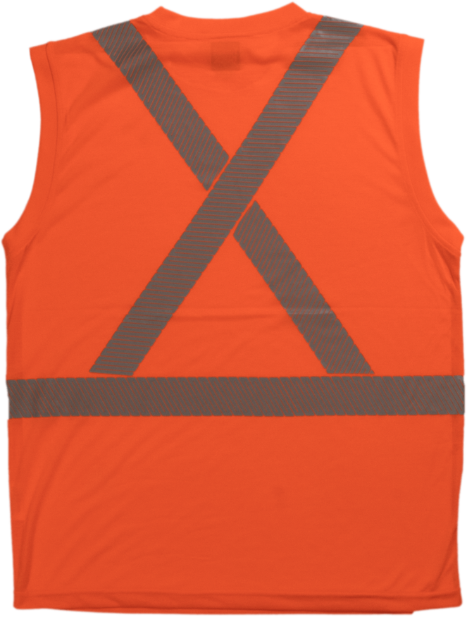 This sleeveless summer safety shirt is made by Tough Duck from Richlu. Made of lightweight, soft, easy-to-wear polyester jersey with comfortable retro- reflective striping.