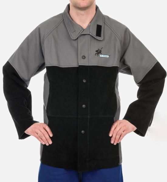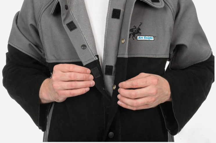 The Weldas® Arc Knight® FR Welding Jacket features a durable FR Cotton material on the chest, shoulder, and back, providing a lightweight, comfortable, and cool wearing experience. To enhance protection in high impact areas exposed to heat and spatter, the jacket incorporates side split cowhide on the arms and abdomen. This versatile jacket is suitable for various welding applications, including those that typically require full leather attire. Applications: Light, Medium & Heavy Duty Welding