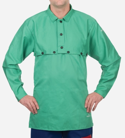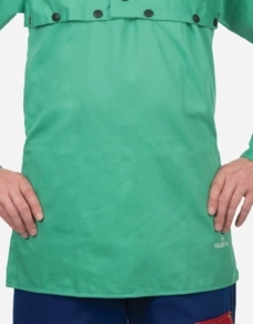 Weldas® offers a wide selection of durable protective jackets and apparel made from flame retardant 9 oz. cotton sateen. The Weldas® FR collection follows the ASTM D6413-13b test method to ensure reliable vertical flame resistance, as well as after flame, afterglow, and self-extinguishing properties. It maintains its flame retardant qualities even after undergoing up to 50 regular home washings or 25 commercial washings. Customers highly value the vibrant green color option. Ideal applications for these products include light duty and low amperage welding and cutting tasks. Attachable bibs sold separately.