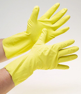 Yellow HGY Latex Household Dishwashing Gloves, Flocklined, Dozen Pair